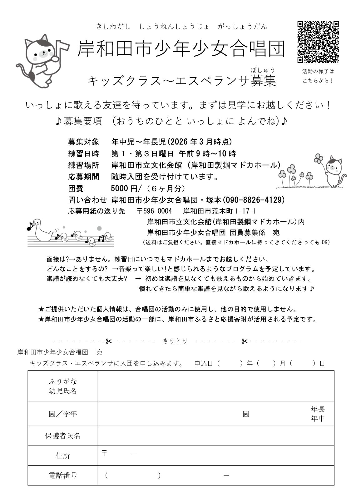 岸和田市少年少女合唱団 団員募集係 宛