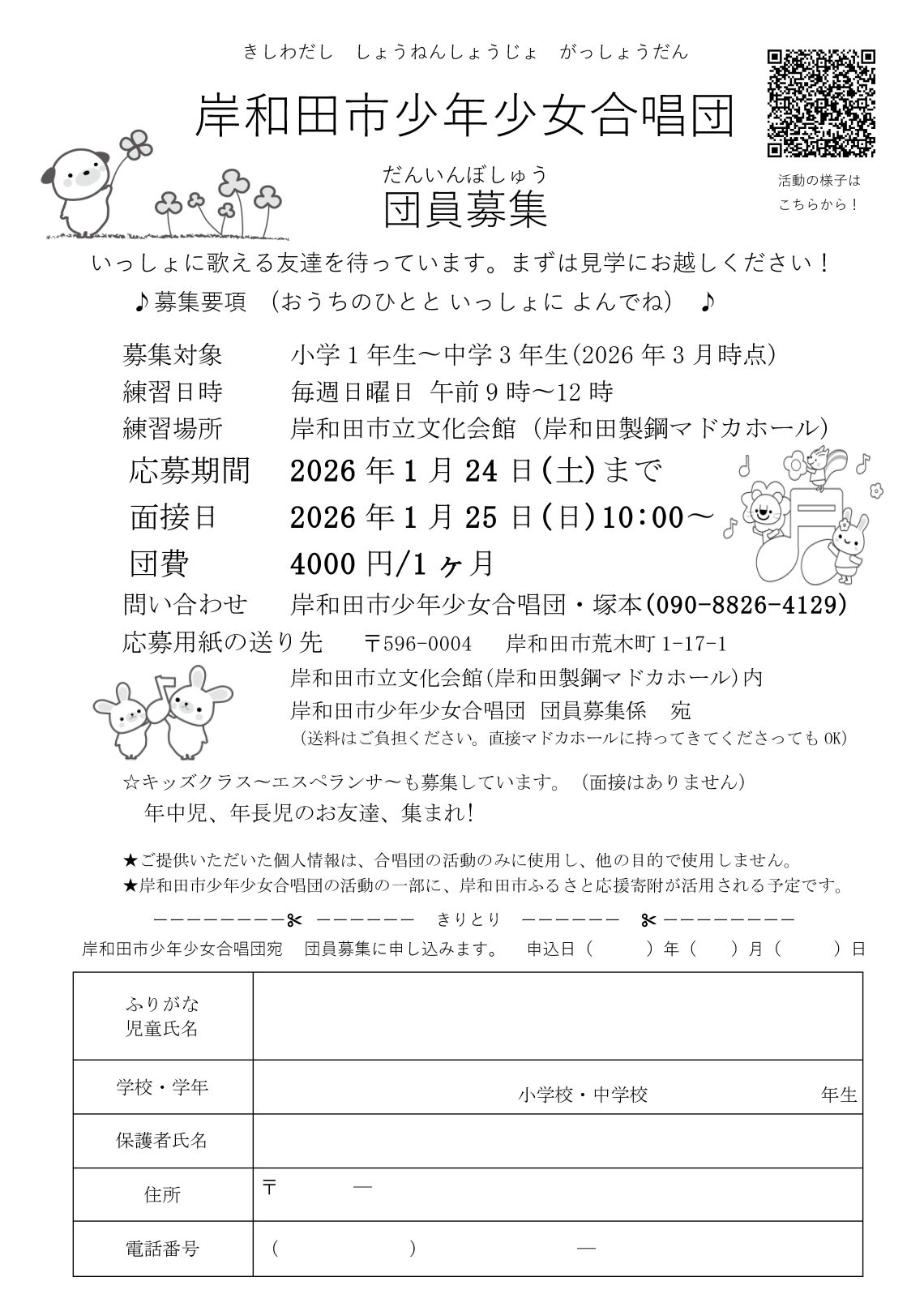 問い合わせ 岸和田市少年少女合唱団・塚本(090-8826-4129)
